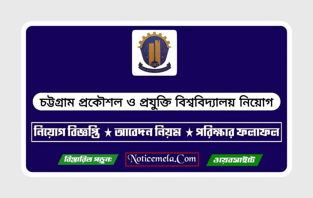 চট্টগ্রাম প্রকৌশল ও প্রযুক্তি বিশ্ববিদ্যালয়ের (চুয়েট) নিয়োগ বিজ্ঞপ্তি ২০২৩ প্রকাশিত হয়েছে। গত ০৬/০৬/২০২৩খ্রিঃ তারিখে www.cuet.ac.bd ওয়েবসাইটে নতুন ০১ টি সার্কুলার